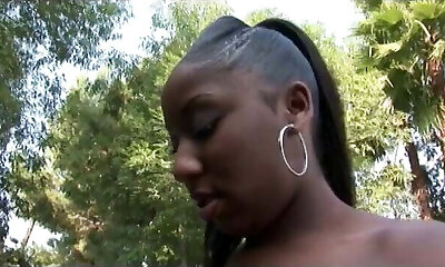 Chocolate cockslut with round ass is riding dick outdoor