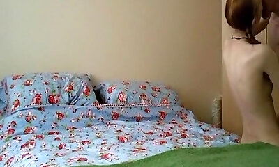 Anorexia pigtailed redhead girl has missionary, from the rear and cowgirl sex with creampie on the bed.