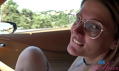Blond amateur Luci Angel gets undressed and fucked in the car