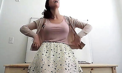 Playful floozy with diminutive ninnies Jasmine Lau takes off her clothes and dances