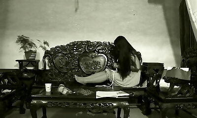 Naked groom and sexy Chinese bride in white lingerie have great fuck-a-thon