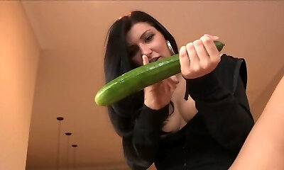 Hot Mature Brunette - Big Fake Penis & Deep Cucumber