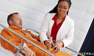 Horny and super-fucking-hot ebony doctor flashes her tits before patient fucks her mish