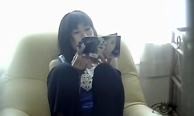 First she reads erotic magazine and then she masturbates