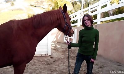 Hot pianist Samantha Ryan rides a big trunk and gets jizz to her face