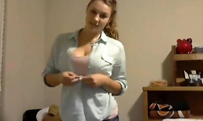 Teen In Jeans Does Sexy Solo Striptease Vid