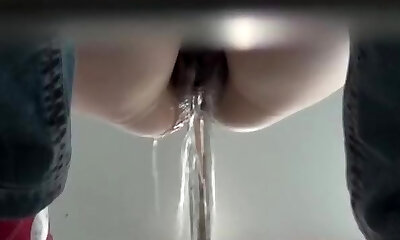 My hairy pussy urinating all over toilet and bathroom