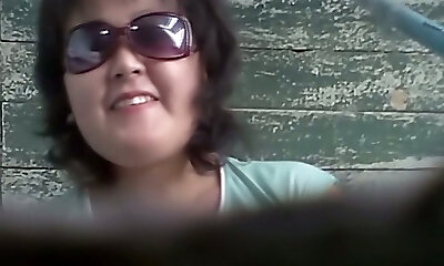 Lewd chubby Asian bitch plays with her udders and snatch in the toilet